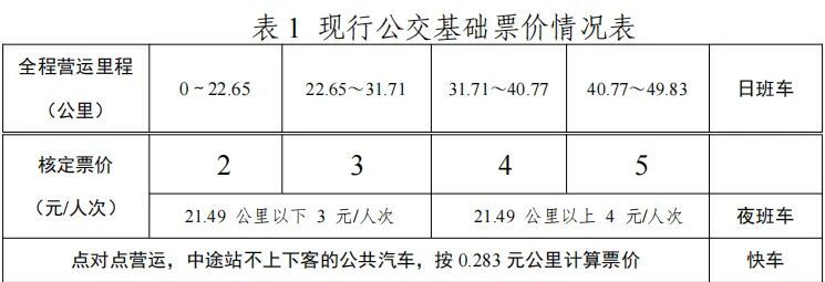 现行公交基础票价情况如何?